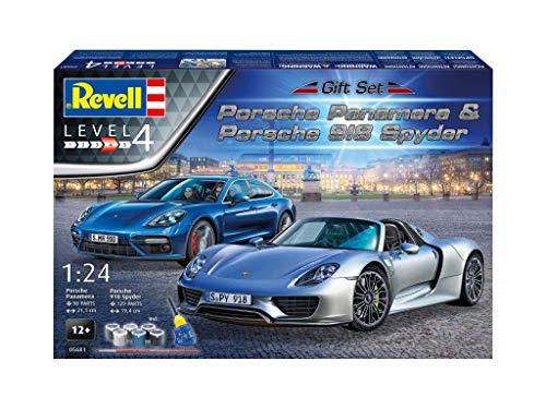 Mit dem innovativen Supersportwagen Porsche 918 Spyder ferner der sportlichen Limousine Porsche Panamera Kompressor beweist der Stuttgarter Autobauer, dass er aka alleinig der Sportwagenikone 911 aufregende Autos bauen kann. Das Geschenkset enthält Bausätze beider Fahrzeuge, Basisfarben, Adhesiv ferner Pinsel. – Set über Porsche 918 Spyder ferner Porsche Panamera Kompressor – Motornachbildungen – Drehbare Räder – Bewegliche Frontachse – Basisfarben, Adhesiv ferner Pinsel