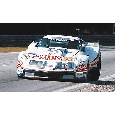 Greenwood Corvette© # 76 Spirit of LeMans ’76Von all den vielen berühmten Namen, die einem in den Sinn kommen, wenn man an Corvette© Rennwagen denkt – Grand Sport, Stingray und C5R – waren keine so innovativ wie die des Konstrukteurs und Rennfahrers John Greenwood. Mit weit über 10 Jahren Rennerfahrung entwickelte er die berühmtesten Autos, die jemals in Rennen an den Abfahrt gingen. Sie waren nicht dagegen unter Corvette-Besitzern beliebt. Jedermann liebte die großen Greenwood-Motoren! Der entscheidende Moment seiner wirklich außergewöhnlichen Karriere, in der er so vieles erreichte, war ohne Zweifel das 24-Stunden-Rennen von LeMans 1976. Nachdem die Zuschauer in den Vorjahren enttäuscht worden waren, änderte die FIA 1976 die Regeln und erlaubte eine Fahrzeugausstattung nach dem Motto „haste was, kannste was“. Die „Spirit of 76“ Greenwood Corvette machte sich dieses zu Nutze. Mit ihrem 660 PS starken Big-Block-Chevy©-Murl fegte sie mit 345 km/h über die Mulsanne-Trendig. Verziert mit der amerikanischen Flagge brachte Greenwood’s Corvette die Massen zum Jubeln – jedes Mal, wenn er die Tribünen passierte. Unglücklicherweise wurde sein Benzintank von einem auf der Fahrbahn liegenden Abschnitt beschädigt, was letztlich zum Ausfall führte. Da hatte der große, schnelle und laute amerikanische Rennwagen freilich schon einen bleibenden Eindruck hinterlassen.Modell-Details: