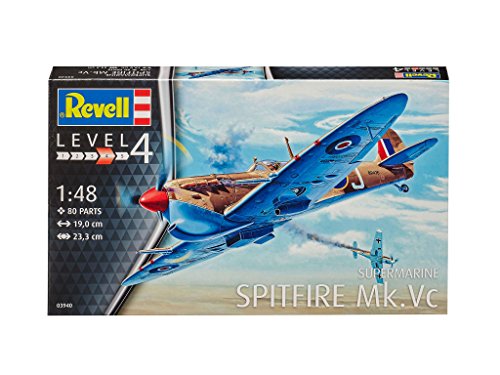 Revell Modellbausatz Maschine 1:48 – Supermarine Spitfire Mk.Vc im Richtlinie 1:48, Schicht 4, originalgetreue Kopie durch vielen Feinheiten, 03940