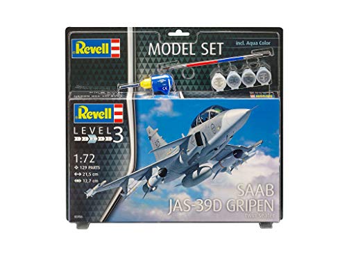 Revell Modellbausatz Flugmaschine 1:72 – Saab JAS-39D Gripen TwinSeater im Richtwert 1:72, Level 3, originalgetreue Klischee durch vielen Feinheiten, , Model Set durch Basiszubehör, 63956