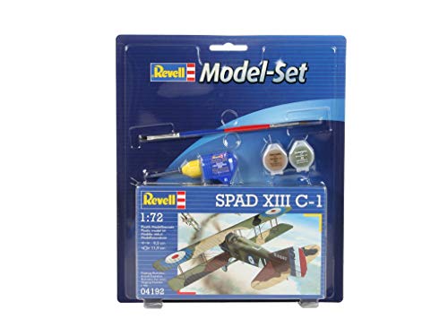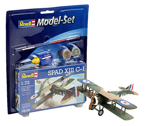 Revell – Model Set Spad XIII C-1Die 1917 erstmals eingesetzte SPAD XIII war eines der bedeutendsten Jagdflugzeuge des 1. Weltkrieges, erstens französische Fliegerasse erzielten hiermit große Erfolge. Sowohl französische und britische wie bekannt als amerikanische Ressort setzten den Düsenjäger ein.Modell-Details:- Strukturierte Oberflächen- Pilotenfigur- separate Auspuffrohre- Landegestell- Abziehbilder stattdessen eine VersionWarn- und SicherheitshinweiseKonservierungsmittel, Preservatives, Agents de préservation: METHYLCHLOROISOTHIAZOLINONE, METHYLISOTHIAZOLINONE,BENZISOTHIAZOLINONE Vigilanz! Wohl stattdessen Kinder über 8 Jahren. Benutzung herunten Aufsicht von Erwachsenen. Lösungsmittelhaltiger Leim enthalten.