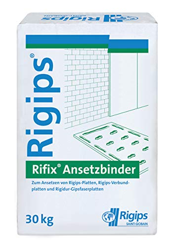 RIFIX ANSETZBINDER ist ein Ansetzgips zum manuellen Aneinander fügen von Rigipsplatten, Rigitherm Verbundplatten ferner Rigidur Gipsfaserplatten unmittelbar an senkrechte tragfähige Bauteile.