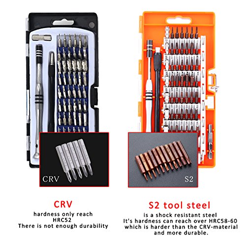【S2 Stahl Abriebfestigkeit】 Das Schraubendreher Bit Satz besteht sämtliche S2 Legiertem Werkzeugstahl mit härte HRC60, die schwieriger ist denn die Crv Material. Sie sind Schwer zu Verformen und Brechen, Stellen sie Abgehärtet, dass die Nachhaltigkeit und Langfristige Nutzung.