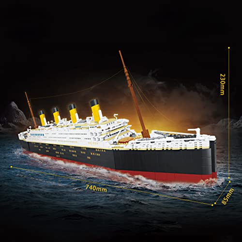 Technik Titanic Schiff Bausteine Bauset, Techik Titanic Schiff Modell mit Beleuchtung, Pädagogisches Bausteinspielzeug für Erwachsene und Kinder, 4000+ Klemmbausteine Teile