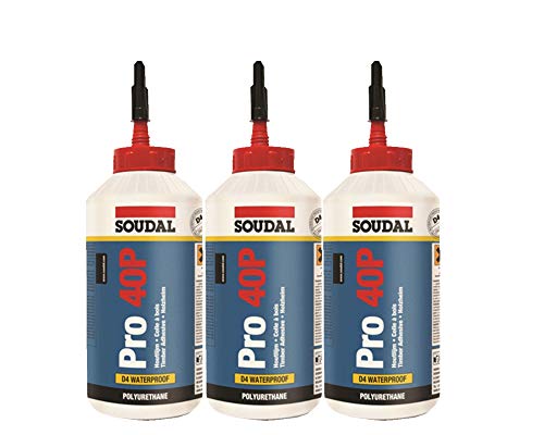 Set 3x Soudal Holzleim Pro 40P PU-Leim wasserfest Polyurethanleim Leim D4 750g