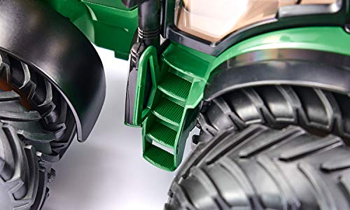 Detailgetreuer, ferngesteuerter Traktor der Marke John Deere mit Doppelreifen zum Spielen und bespaßen stattdessen Groß und Klein, Steuerung per Bluetooth-Fernsteuerung oder per App via Bluetooth