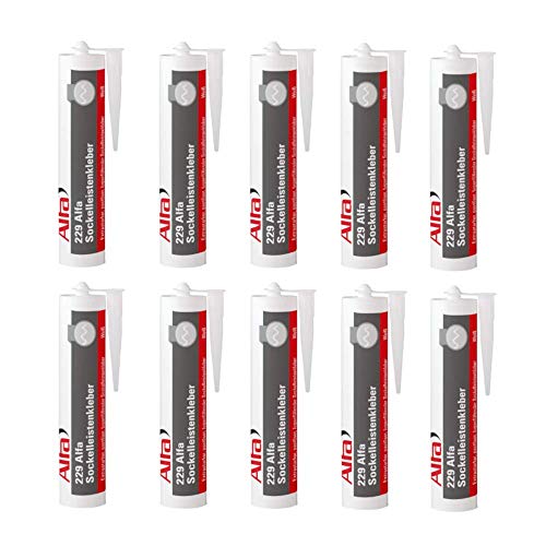 10x Alfa Sockelleistenkleber 300ml/440g weiÃer Montagekleber mit hoher Anfangshaftung zur Befestigung von Sockelleisten