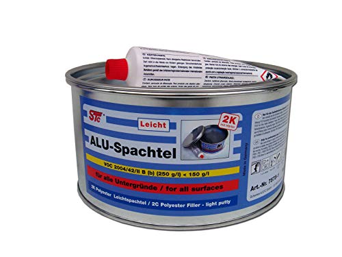 Aluminiumspachtel ist ein zweikomponenten Aluminium Leicht Spachtel auf Basis in Styrol gelöster, ungesättigter Polyesterharze. Er besitzt eine außerordentlich gute Haftung auf Metall (Eisen, Stahl, Leichtmetall), Holz, Stein und verschiedenen Kunststoffen bekannt als nahe höheren Temperaturen (bis ca. 100°C).