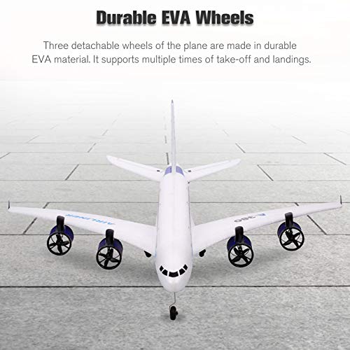 Der Körper besteht aus EPP-Material. Es ist leicht und hat eine glatte Oberfläche. Im Vereinbarung zu anderen Materialien ist es adaptiv und sturzsicher. Drei Räder des Flugzeugs bestehen aus EVA-Material, das langlebig ist.