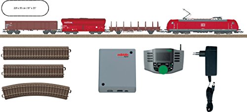 Trix Startpackung „Moderner Güterverkehr“. Schleier: Trix H0 Epoche: V. Vorbild: Elektrolokomotive Baureihe 185.1 der Deutschen Bahn AG (DB AG), 1 Selbstentladewagen Fals 176 der Railion Deutschland AG, 1 Rungenwagen Kbs 443 und 1 offener Güterwagen Eoas 106 der Deutschen Bahn AG (DB AG). Modell: Lokomotive unter Zuhilfenahme von Digital-Decoder mfx und DCC, sowie einem Spezialmotor. 4 Achsen anhand Kardan angetrieben, Haftreifen. Fahrtrichtungsabhängig wechselndes 3-Licht Spitzensignal tradiert quicklebendig, digital schaltbar. Beleuchtung unter Zuhilfenahme von warmweißen Leuchtdioden. 2 mechanisch funktionsfähige Dachstromabnehmer. Rungenwagen unter Zuhilfenahme von abnehmbaren Rungen. Selbstentladewagen unter Zuhilfenahme von maßstäblicher Kohle beladen. Kupplungsaufnahmen nach NEM. Gesamtlänge anhand Puffer 66,8 cm. Inhalt: 12 gebogene Gleise 62130, 8 im Trend Gleise 62188, 8 im Trend Gleise 62172. Gleisanschlussbox, Trix Mobile Station und Schaltnetzteil 230V/36 VA. Highlight: Idealer Einstieg in die digitale Welt von Trix H0. Moderne Zugzusammenstellung der Epoche V. Beleuchtung der Lokomotive unter Zuhilfenahme von warmweißen Leuchtdioden. Automatische Registrierung an der Mobile Station in Anbetracht eingebauten mfx-Decoder. Aufbaufreundliche Trix C-Gleis-Beilage. Einmalige Nachfolge. Diese Startpackung kann unter Zuhilfenahme von der C-Gleis-Ergänzungspackung Art.-Nr. 62900 und dem gesamten C-Gleis-Programm erweitert werden.