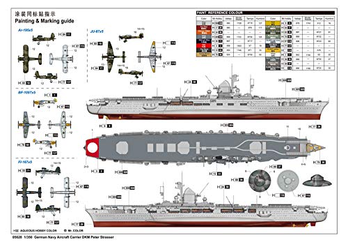 Plastikmodellbausatz eines deutschen WWII Flugzeugträgers, der absolut nie mithilfe das Planungsstadium hinaus kam. 840 Teile, Metall- darüber hinaus Photoätzteilen sowie Flugzeuge. Länge gebaut 750 mm / Durchmesser 90 mm.