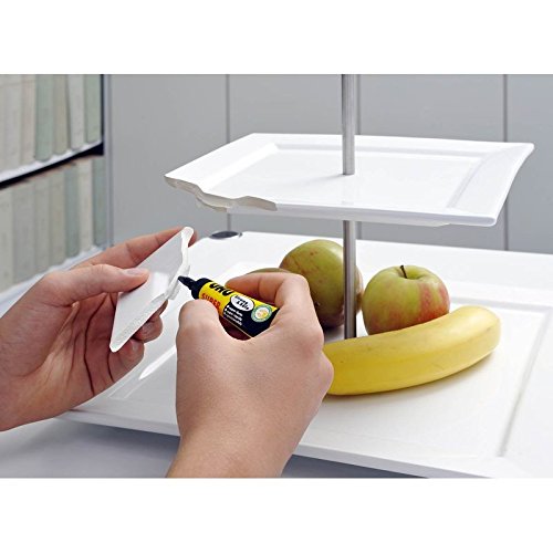 UHU Alleskleber SUPER – klebt super stark, super schnell, verklebt die Finger aber nicht sofort. Die patentierte Klebeformel bleibt für ca. 20 Sekunden nachkorrigierbar und ist für praktisch alle flexiblen, festen, porösen und porenfreie Materialien geeignet. Hält Vibrationen und Erschütterungen stand, ist flexibel, transparent und geruchlos. Feuchtigkeits- und Hitzebeständig von – 50 °C bis 100 °C.