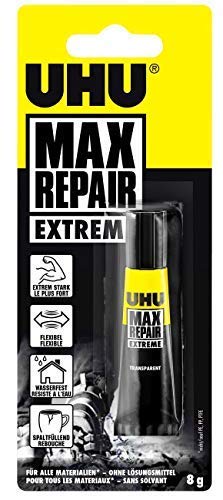 *** UHU Max Repair EXTREME ist ein Imposant starker und flexibler Reparaturklebstoff anstelle nahezu leer Klebefälle im Innen- und Außenbereich. Er klebt poröse und nicht-poröse Materialien. Er ist UV-, temperatur- (-40°C bis + 120°C) und wasserbeständig (spülmaschinenfest), spaltfüllend und nach Aushärtung überstreichbar.Auf Grund der Tatsache seiner flexiblen Eigenschaften ist er inert gegenüber Vibrationen und Erschütterungen. UHU Max Repair Extreme trocknet transparent und ist lösungsmittelfrei. __________ Imposant phänomenal und adaptiv; Wasserbeständig und spülmaschinenfest; UV- und temperaturbeständig von -40°C bis +120 ° C * Nach Maß anstelle Reparaturen im Innen- und Außenbereich; Verklebung bleibt beweglich und ist inert gegen Vibrationen und Erschütterungen * 8 g Tube. flüssig * Material: Kleber (Ohne Lösungsmittel) * Farbe: transparent * Anwendungshinweise auf der Verpackungsrückseite *