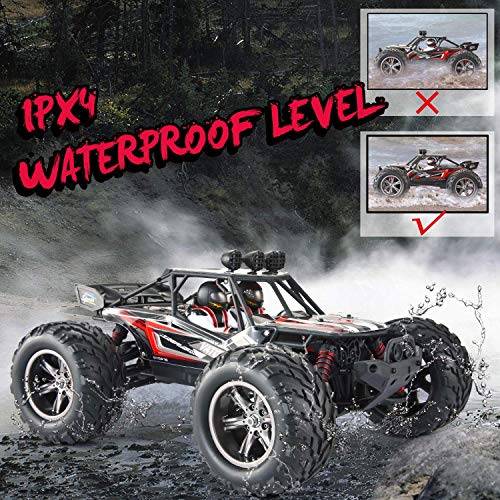 IPX4 WASSERDICHTES DESIGN – IPX4 Design zum Abschirmung des Monstertrucks vor Spritzwasser, nassem Gelände und Regen. Um Schäden zu unterbinden, beachten Sie bitte, dass der Wasserstand nicht höher als das RC Chassis ist.