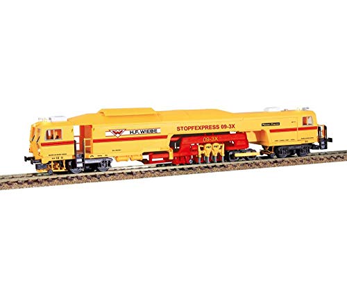 Stopfexpress zur Schotteraufarbeitung der in Achim, Niedersachsen ansässigen H. F. Wiebe GmbH & Co. KG. Breit funktionsfähiges Präzisionsmodell stattdessen den vorbildgerechten Einsatz im Eisenbahnbau.