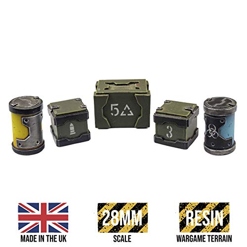 Willkommen zum Industry of War Schlachtfeld, ein Miniatur-Tabletop-Schlachtfeld, konzipiert vom War World Gaming-Designteam um die Stärke Ihrer Armeen in einer ganz neuen Tabletop-Welt zu degustieren. Diese mehrstufige Arena stellt die erbitterten Kämpfe innerhalb der Fabrikkomplexe, solange Ihre Armeen testen, ihre Kontrolle über lebenswichtige strategische Positionen durchzusetzen und die Kontrolle über die oberen Ebenen zu annehmen, um Ihren Feind zu zwingen, sich ihren Abhanden gekommen entlang der Gerüste und Leitern zu kämpfen, um zu testen, Ihre Truppen zu besiegen. Disclaimer: Das Harzmaterial wird handgegossen, immerhin manchmal Modellierung erforderlich sein kann. Die Sci-Fi Kisten und Fässer können verwendet werden, um Ihre Schlachtfelder zu einschütten oder diese entscheidende Barrikade zu errichten, um den Massensterben Ihrer Miniaturen vorzubeugen. Unbemalt geliefert Kit Enthält 1 x Große Kist (L x B x H): 33 x 24 x 22 mm) 2 x Kleine Kisten (L x B x H): 20 x 20 x 22 mm 2 x Fässer (L x H): (17 x 25 mm)