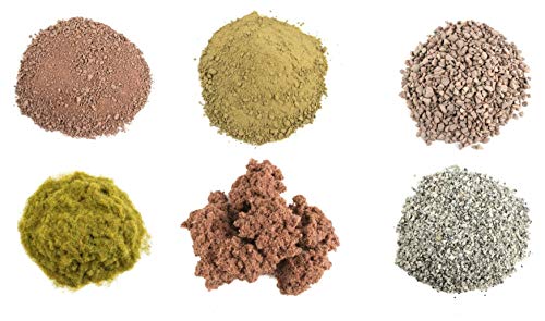 Kit Enthält (siehe Bilder für Beutel Größe): 1 x kleine Beutel von Gemischte Graue Steine, 1 x kleine Beutel von Rote Felsen, 1 x kleine Beutel von Wüste-Sand, 1 x Mittelgroße Beutel Feine Rote Steine, 1 x Mittelgroße Beutel 2mm Abgestorbene Statische Grasfasern