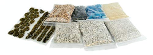 Kit Enthält (L x B x H): 1 x Feinsand, 1 x Feinbauschutt, 1 x Grobbauschutt, 1 x Große Bauschutt, 1 x Holzsplitter, 1 x flüssige Gesteine, 1 x Glastrümmer, 1 x Bauschutt Gras Büschel
