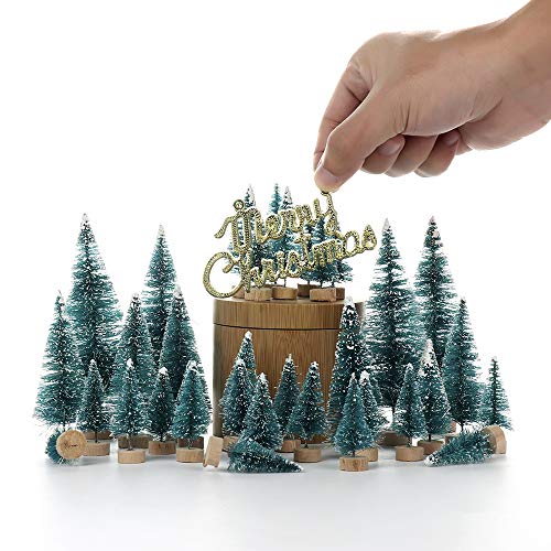 Xueliee Mini-Sisal-Schnee-Frostbäume, Flaschenbürste, Bäume, Kunststoff, Winter, Schnee, Ornamente Tischbäume (34 Pcs)